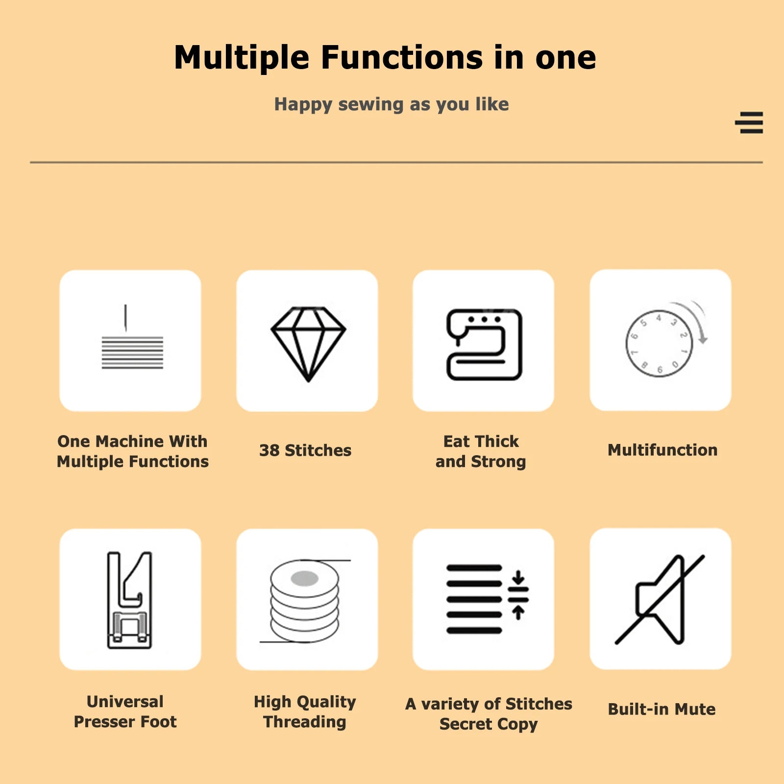 - Features: 12 built-in stitch types, 3 adjustable densities, up to 38 stitch extensions; multi-functional in one