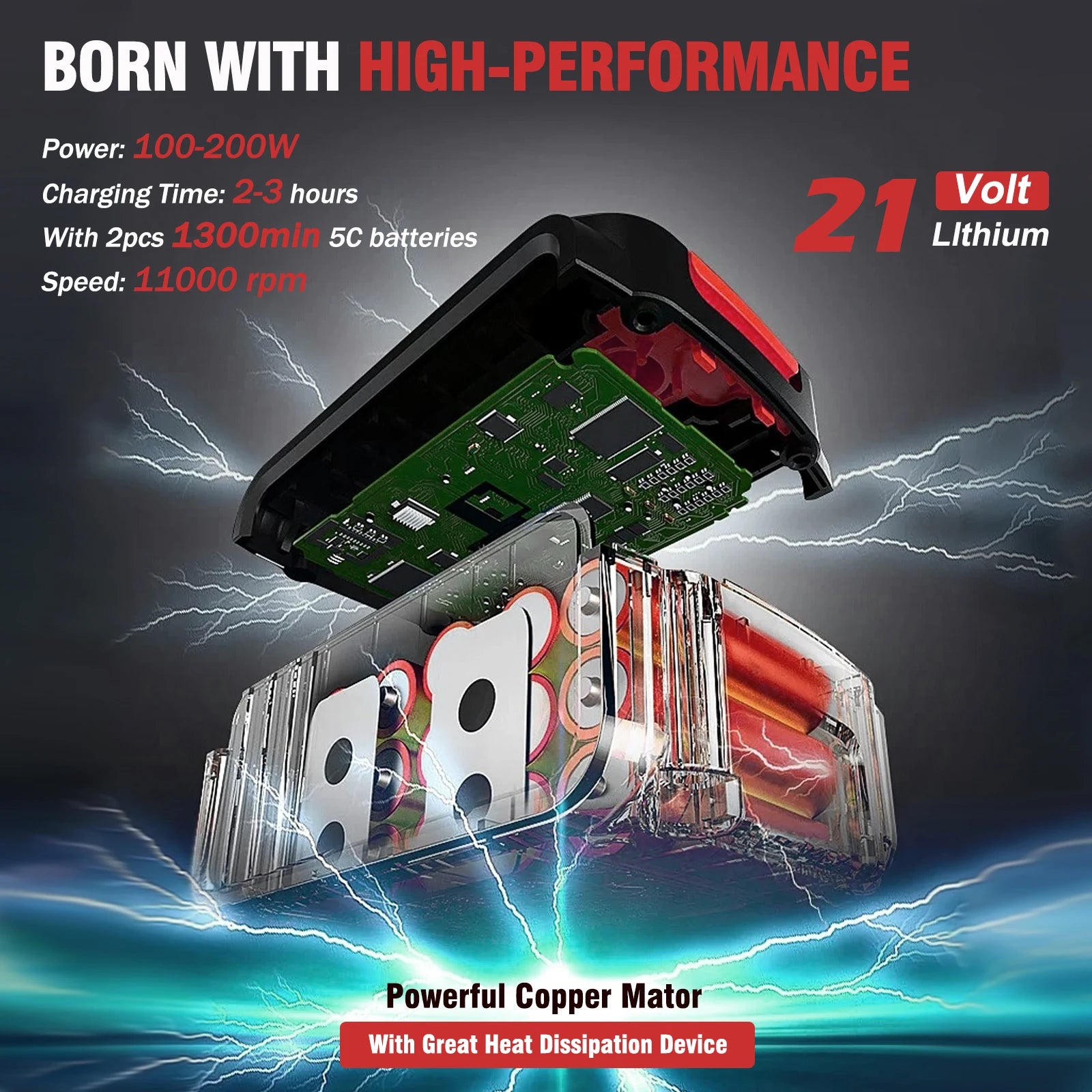 - Brushless Motor provides higher efficiency, longer life, and lower maintenance compared with traditional brushed motors.