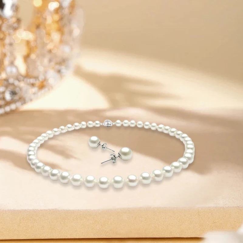 - Pearl Stud Earrings — delicate studs to coordinate with the necklace.