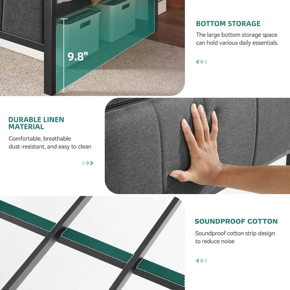 YITAHOME Queen Bed Frame With Storage Headboard LED Platform Bed With Charging combines modern styling with practical technology and hidden storage to elevate any bedroom. This queen-sized frame features an upholstered headboard, a robust alloy steel core, and a grey varnished finish for a polished look that lasts.